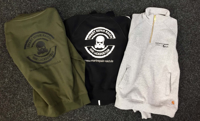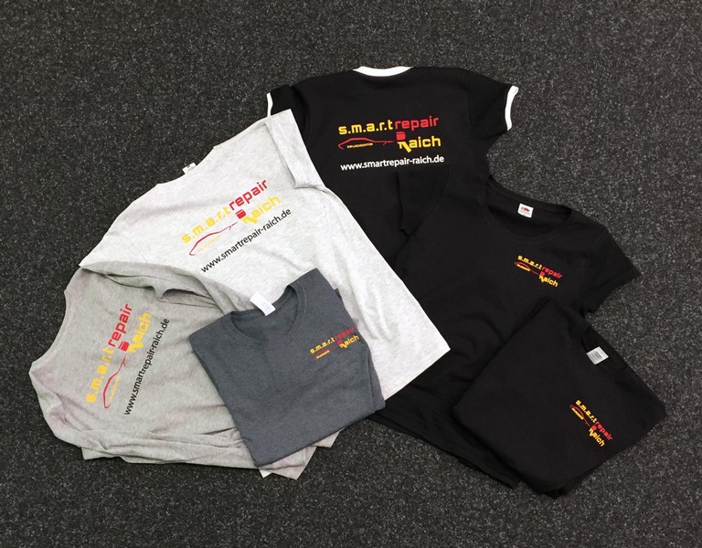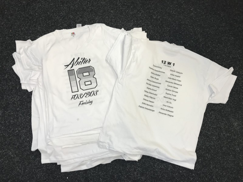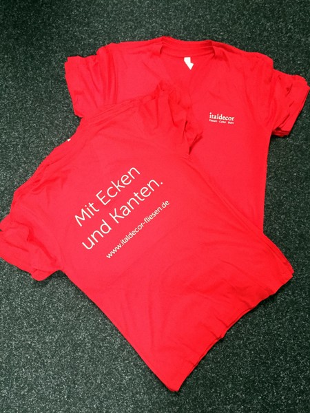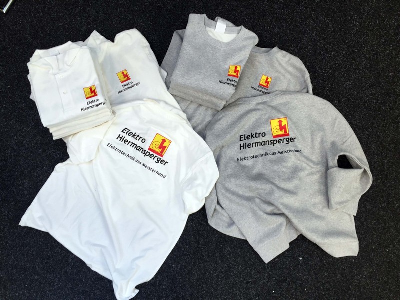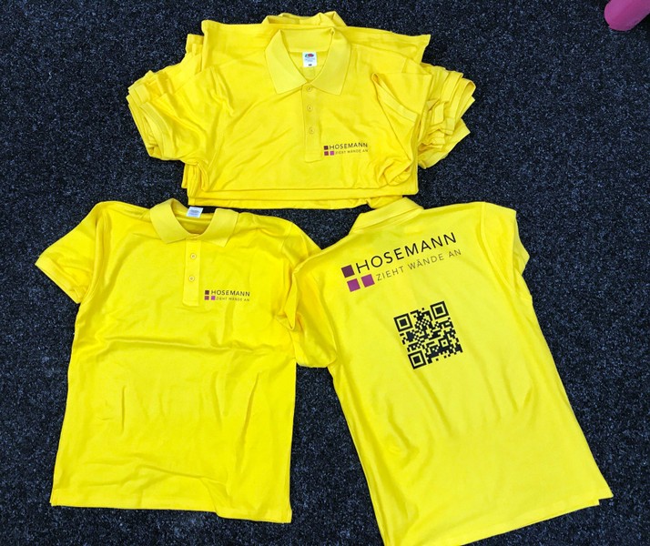 Einfarbig, mehrfarbig, vorne, hinten, oben, unten, am Ärmel, am Kragen, sogar auf der Innenseite haben wir schon bedruckt. (Fast) Alles ist machbar.